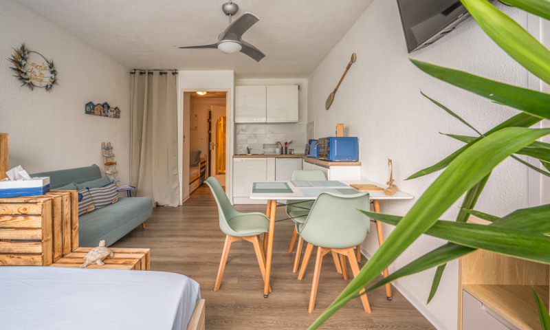 Cet appartement est situé a GRUISSAN, à deux pas de la plage (50 Mètres), et du port (100m)